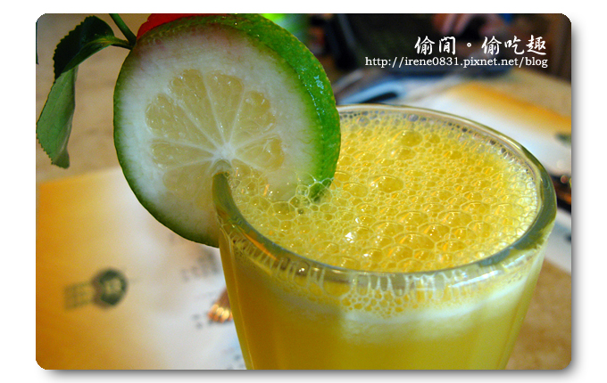 我的橙汁綠茶...就是在綠茶裡加入現榨的橙汁...
