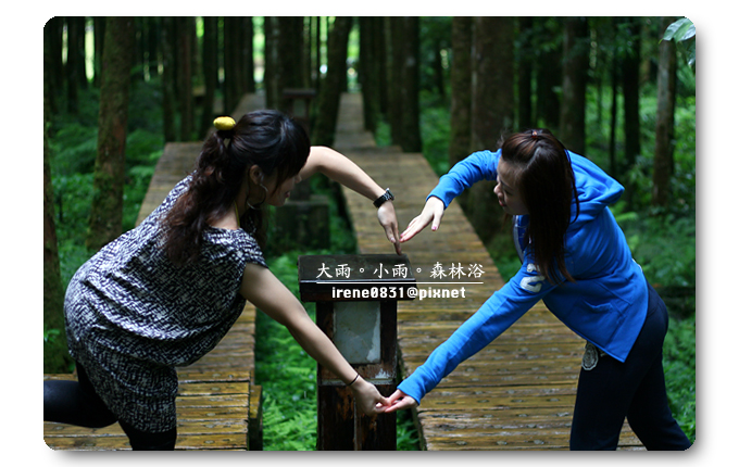 明明我想好好地拍照一張神木,偏偏噗小翠帶了一顆超不熟悉的鏡頭,讓噗小翠前前後後進進退退,就是橋不出個適當的距離,為神木拍下一張,當下...噗小翠好氣自己唷!為什麼就是拍不好!不過這樣沮喪的情緒並沒有維持太久,神木拍不好也不代表人也拍不好啊??而且...難得姐妹出遊,拍人比拍景更是重要的嘛!只是...山上的遊客真的好多好多,我們實在無法避開旁邊的閒雜人等,算了...大家就一起入鏡吧!咕咕這二天造型,整個就是以韓國可愛風為路數,就是要走青春路線是吧!頭上的超顯眼的黃色蝴蝶結和鮮黃內搭衣,還互相呼應咧~服了妳...妳第一名!