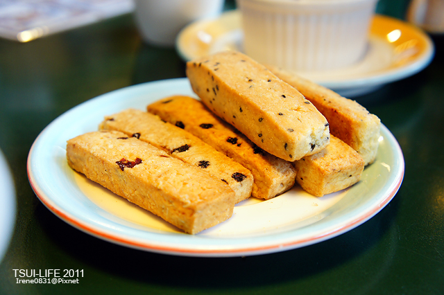 手工餅乾,噗小翠根本沒有機會可以品嚐它的味道,此話怎講呢??因為當飲料甜點才上齊後,沒有一會兒工夫,服務人員竟然通知我們用餐時間限制二小時已經快到了!聽到這消息彷彿晴天霹靂,什麼?我們是來這裡慶生的耶!結果蛋糕還沒切,我們就要包袱收一收走人了嗎??這點讓我們每一個人都覺得不舒服。實在是因為...我們一開始打電話訂位時,店家並沒有主動告知我們有時間限制,再者...服務生點餐也沒有提醒我們。服務生唯一來提醒的就是,小姐不好意思,我們下一桌預定的客人已經快到了,麻煩你們動作要快一點!啥??手工餅乾沒吃,茶還沒喝完,蛋糕也還沒有切,這樣就要我們走了嗎??