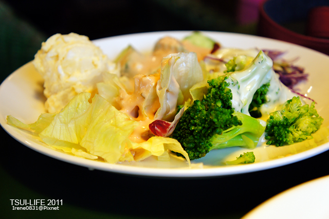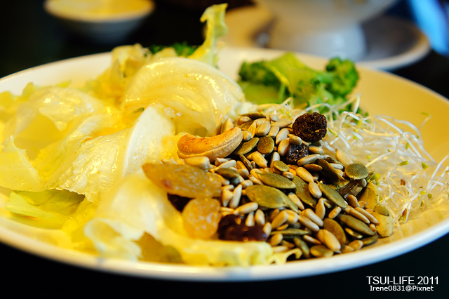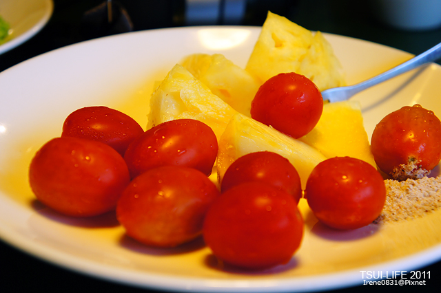 向來早餐食大份量的噗小翠,早餐只嗑了一顆小小的芋泥包和一杯熱紅茶就草草打發,這樣份量實在是苦了我的胃了。於是噗小翠迫不及待地再繼續補充熱量,不管是生菜或是蔬果,食材的新鮮度不在話下,而且種類十分豐富,以沙拉吧的水準來看,這兒的沙拉吧真的很有水準。