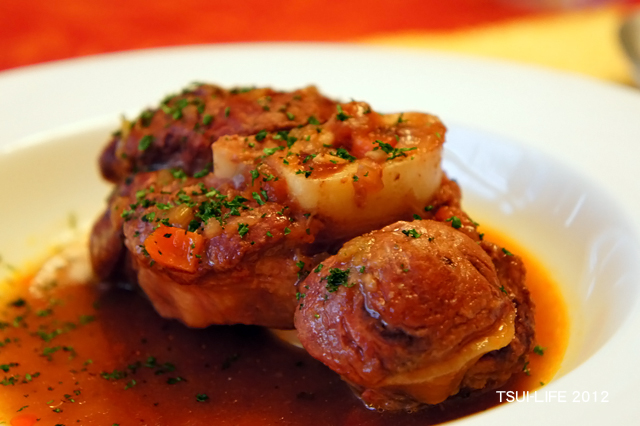 天啊!這牛膝的份量真是誠意十足,吸飽紅酒香氣的牛肉口感軟嫩,讓我吃了一口就停不下來,